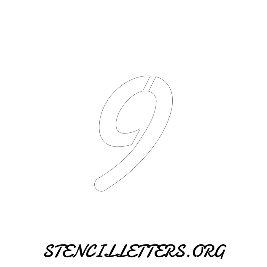 Printable Individual 0-9 Number stencils 139 Cursive - 3 Inch Numbers