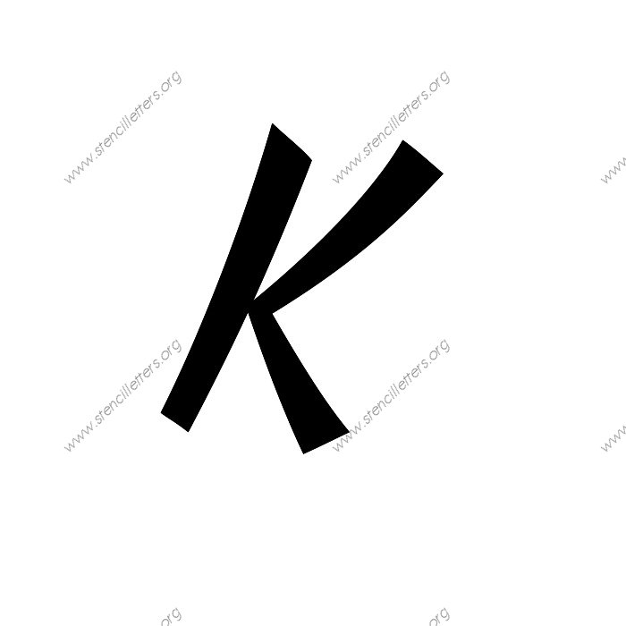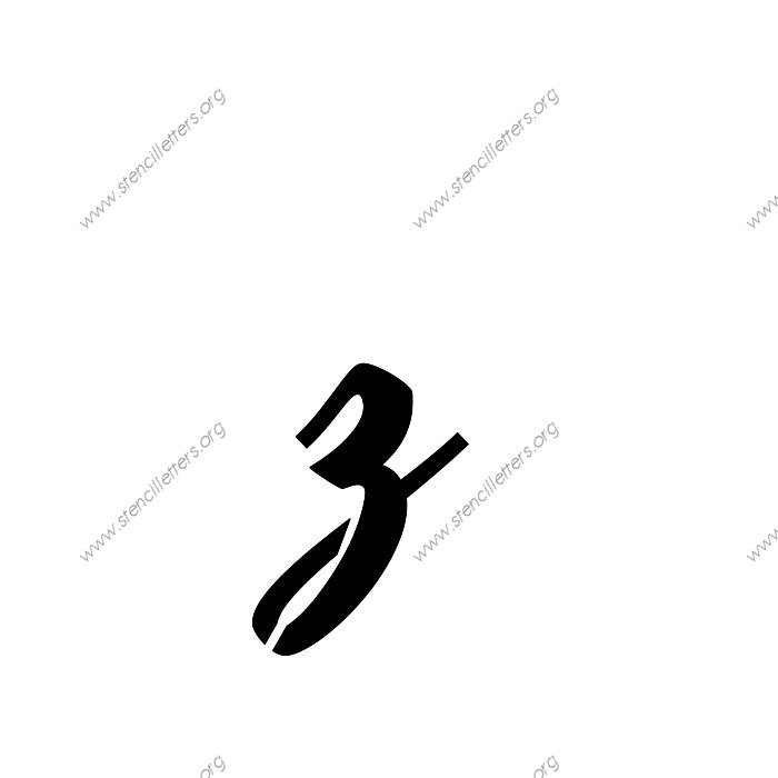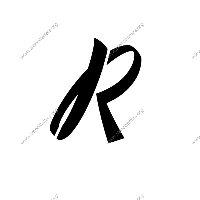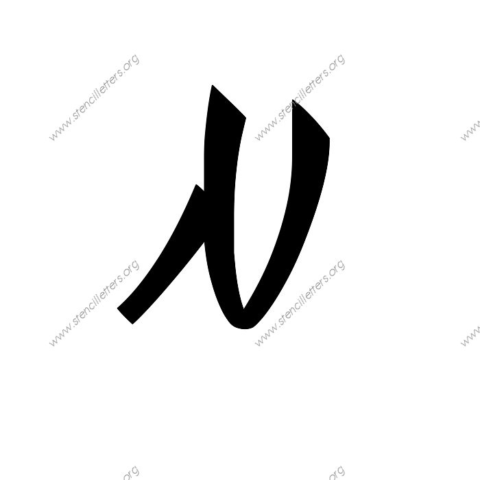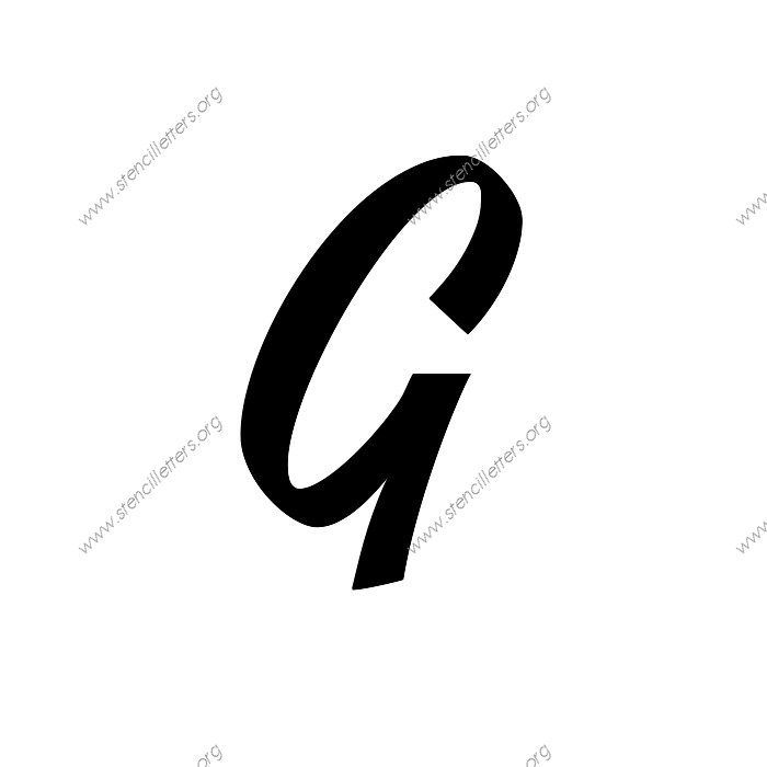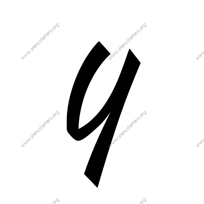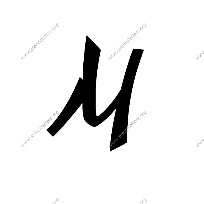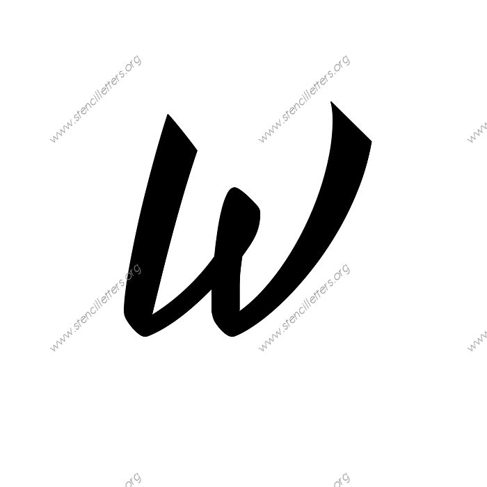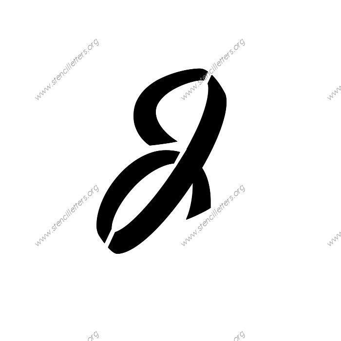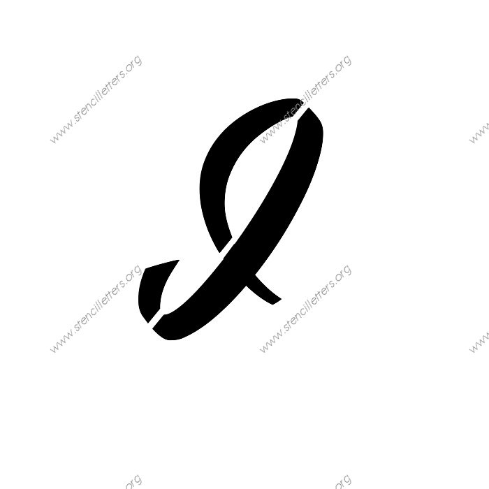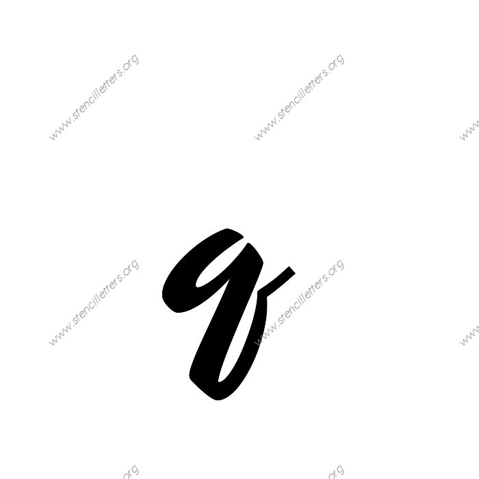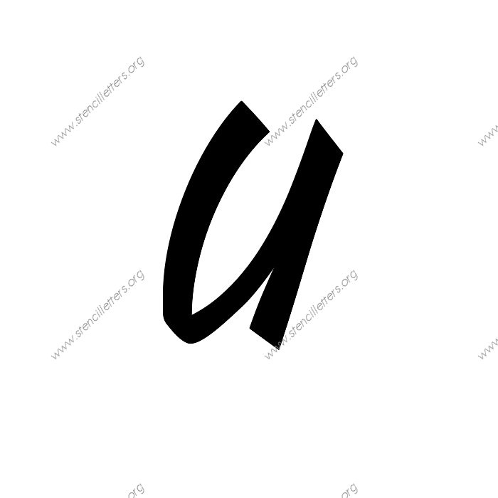 1940s Brushed Cursive A to Z uppercase and lowercase letter stencils available in sizes from 1 inch up to 36 inches. This 1940s Brushed Cursive design is listed in the {Cursive stencils} selection.