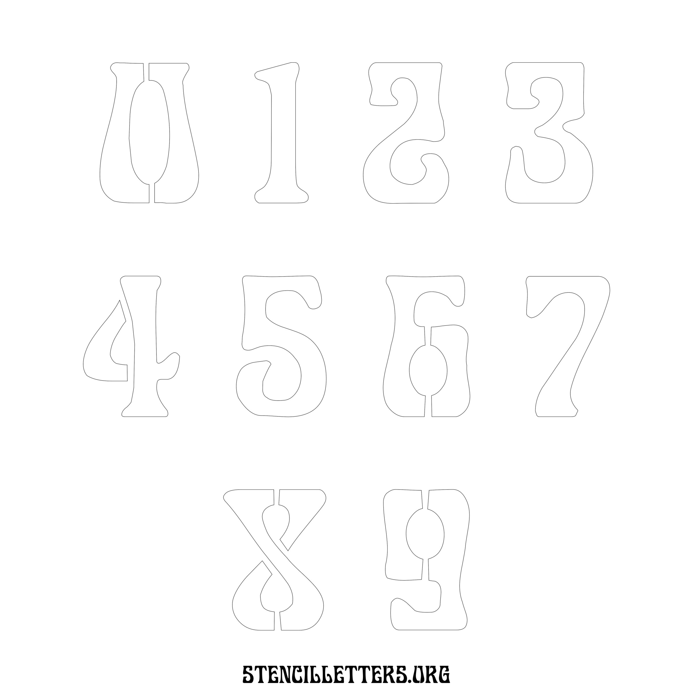 Stencil Design 191 Art Nouveau. Print these free numbers stencils and make your own DIY templates for your stenciling projects. Available in high resolution printable sizes: 4 Inch, 5 Inch, 6 Inch, 7 Inch, 8 Inch, 9 Inch and 10 Inch.