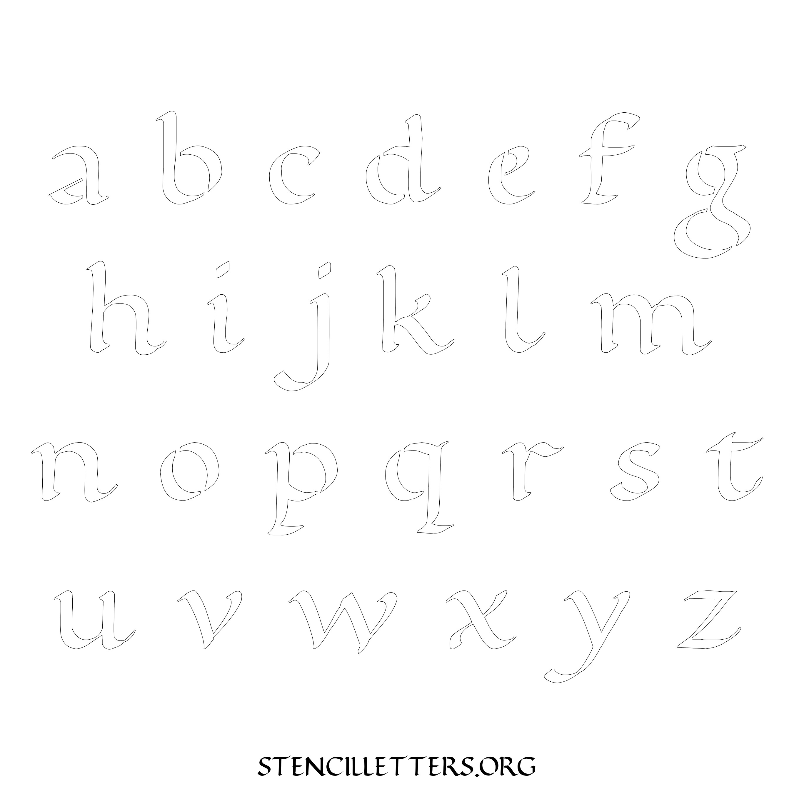 Stencil Design 174 Calligraphy. Print these free lowercase letter stencils and make your own DIY templates for your stenciling projects. Available in high resolution printable sizes: 4 Inch, 5 Inch, 6 Inch, 7 Inch, 8 Inch, 9 Inch and 10 Inch.