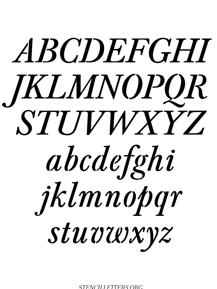 Formal Italic Capital A-Z, small a-z free stencil letter templates to print and cut out.