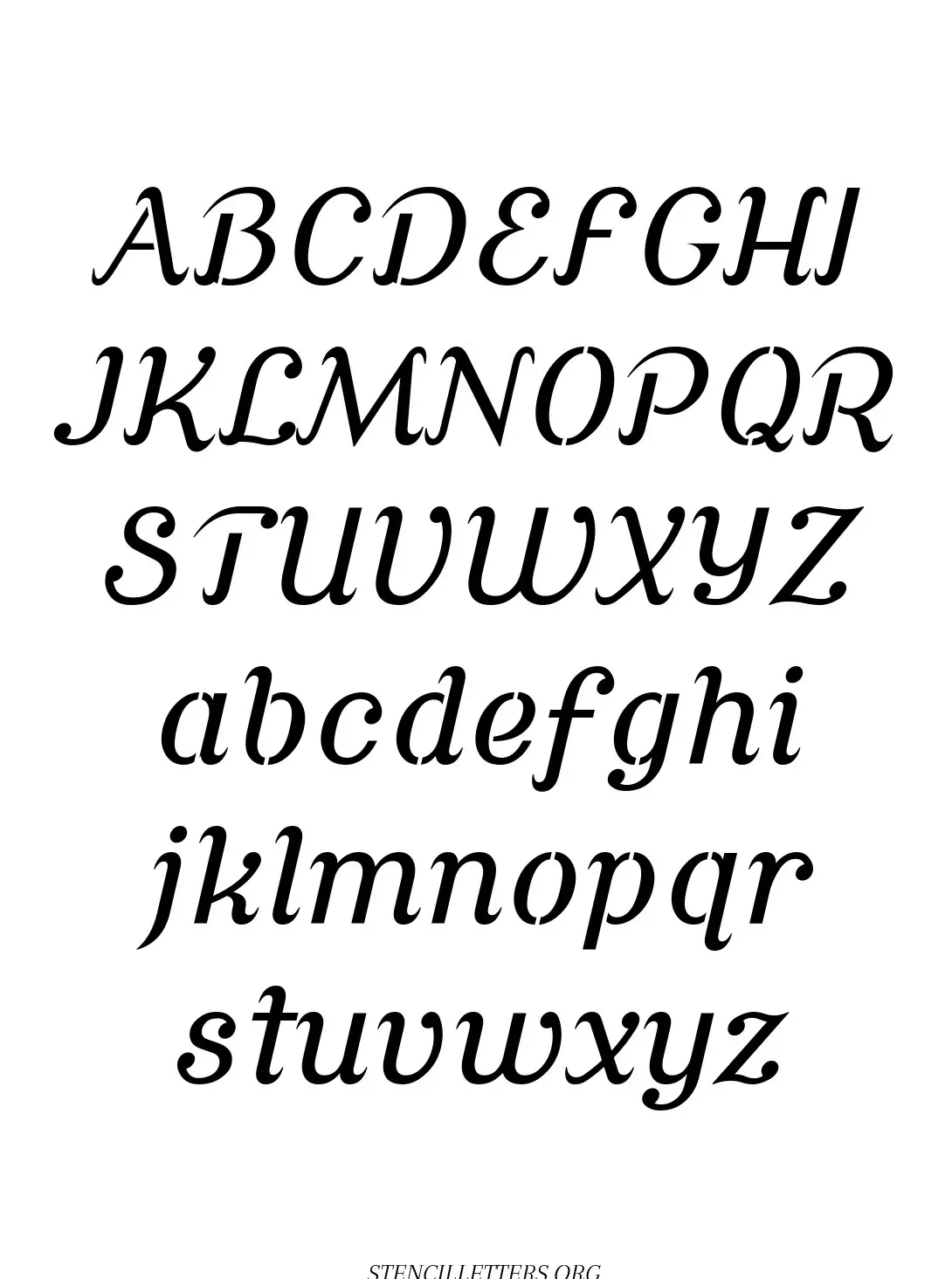 Free printable Grand Ornamental Cursive standard and outline version letter stencils are available in jpg format below.