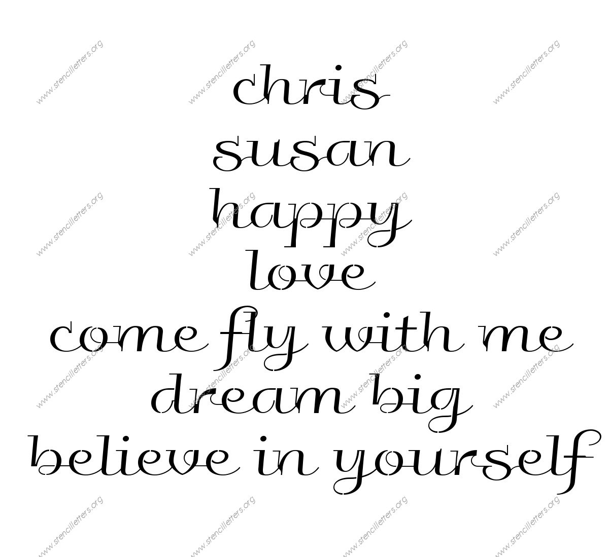 Wedding Calligraphy alphabet letter stencils for business signs, store boards and displays, room doors and walls.