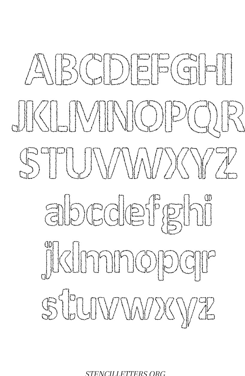 Woodcut Novelty free printable letter stencils in uppercase and lowercase with outline cutout alphabet letters.